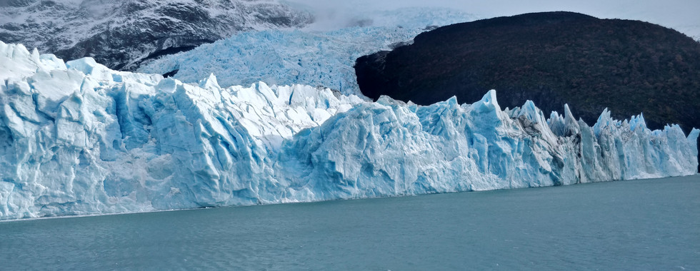 Sailing further towards the Spegazzini Glacier, we encounter the twin hanging Glaciers, Seco and Heim, named this way because they hang from the mountain without reaching the lake.